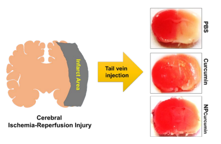 目前研究发现,Cur-NPs可通过保护血脑屏障,抑制M1小胶质细胞活化来减少脑缺血时的氧化应激和炎症反应。在PC12氧葡萄糖剥夺/再灌注的细胞模型中,Cur-NPs在氧葡萄糖剥夺/再灌注条件下可抑制细胞凋亡及自噬,减少缺氧诱导因子-1α的表达,从而发挥神经保护作用。同样,在大鼠局灶性脑缺血再灌注模型中,Cur-NPs可上调p-MEK、p-ERK、Bcl-2的表达并降低Bax水平,抑制神经元凋亡、减轻脑水肿,显著改善神经损伤症状(图4)[6]。