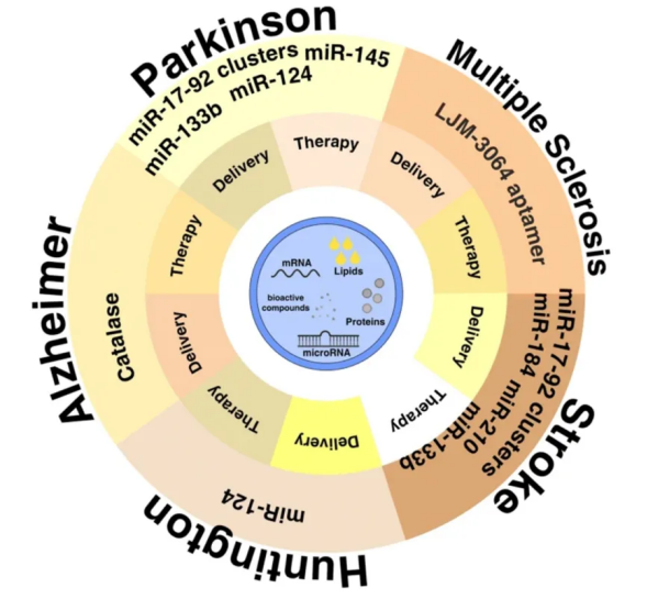 除了上述疾病,如下图所示[1],干细胞外泌体在其他神经退行性疾病(如亨廷顿病、多发性硬化症)的研究中也表现出良好的前景。