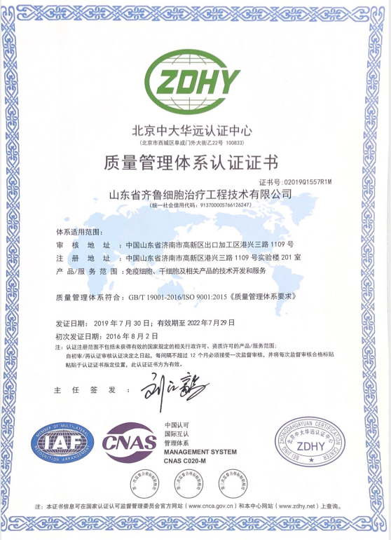 山东省新利18软件官网治疗工程技术有限公司自成立以来,凭借强大的研发实力,承担省、市级科研项目13项,发明专利13项,制定企业标准9项,获得卫生部颁发的室间质评证书,被中华人民共和国发展和改革委员会授予“济南区域细胞制备、检测、储存中心公共服务平台”、山东省发展和改革委员会授予“山东省工程研究中心”、山东省科学技术厅授予“高新技术企业”、济南市发展和改革委员会授予“济南市细胞治疗工程实验室”等荣誉称号。近年来,新利18软件官网治疗一直致力于干细胞和免疫细胞相关的培养、存储、科研和临床转化等工作。