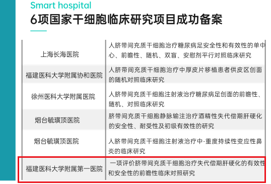 2021年,经过多年努力,《一项评价脐带间充质干细胞治疗失代偿期肝硬化的有效性和安全性的前瞻性临床对照研究》的临床研究项目,获得了国家卫健委的批准、备案。