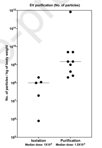 [1]Gupta D, Zickler AM, El Andaloussi S. Dosing extracellular vesicles. Adv Drug Deliv Rev. 2021 Nov;178:113961. doi: 10.1016/j.addr.2021.113961. Epub 2021 Sep 2. PMID: 34481030.