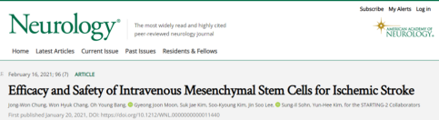 2021年,发表在《Neurology》杂志上研究论文证实了间充质干细胞能够有效改善缺血性脑卒中患者的运动功能,同时无不良治疗副作用。