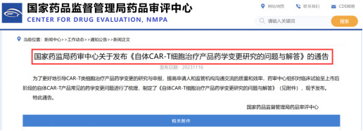 为了更好地引导CAR-T类细胞治疗产品药学变更的研究与申报,提高申请人和监管机构沟通交流的质量和效率,药审中心组织对临床试验至上市后阶段的自体CAR-T产品常见的药学变更问题进行了梳理,制定了《自体CAR-T细胞治疗产品药学变更研究的问题与解答》(见附件)。该文主要适用于自体 CAR-T 产品,其他细胞治疗产品的药学变更研究,例如 TCR-T 细胞、TIL 细胞、成体于细胞等产品,如经评估适用,也可以参考。