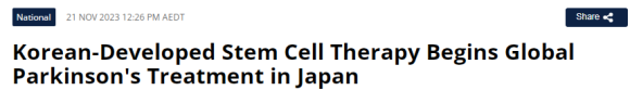 根据外媒报道,韩国一成体干细胞研究机构表示,利用专利技术培养的自体脂肪干细胞治疗帕金森病的再生医学技术已获得日本厚生劳动省批准,将于12月在东京新宿诊所开始治疗。